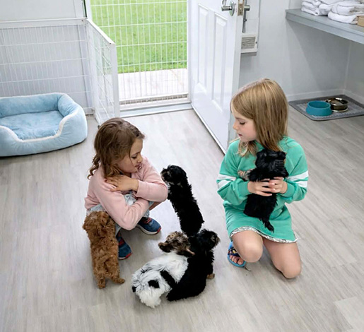 Comme nous habitons en campagne, les chiens ont plus de 20 000 pieds carrés pour s’amuser ainsi que les champs en arrière de chez moi pour prendre de belles et longues marches lorsque le temps le permet bien sûr. Notre cours est entièrement gazonnée et nous avons plusieurs enclos amovibles que nous mettons pour qu’ils puissent jouer dehors très souvent. Mes enfants, mon employé et ma famille socialisent tous nos chiens.